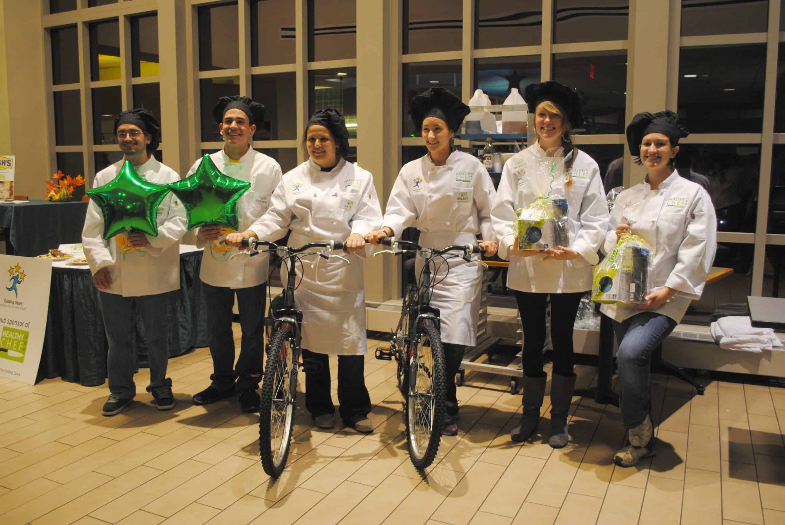 When you think of college dining, you probably think of tons of pizza and kids cooking up ramen noodles in their dorm rooms. I remember lots of toaster-over fare and mystery wok creations by my hallmates. Maybe that’s because we didn’t have the range of options now available. UNH has an amazing dining program, and what’s more, they have Guiding Stars! As a fun way to engage students to think about healthy food and pay attention to the stars throughout the dining hall, UNH developed the Healthy Chef competition. I watched the three top student teams prepare their star-worthy recipes and present to a panel of judges including: Jon Plodzik, UNH Director of Dining; Kristin Lonsinger, UNH Marketing Coordinator; Phoebe Bonaparte-Krogh, UNH Nutrition Intern; Cheryl Krantz, UNH Dining Assistant Manager; and Erin Dow, Guiding Stars Expert Chef.
